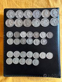 Consegna solo a mano a Roma! Lotto Monete USA (Argento 900) -12x Quarters (Washington/Standing Liberty) -25x Dimes (13 Mercury / 12 Roosevelt) Peso totale lordo: 133,15 g • Titolo: .900 (Argento 90%) • Argento Fino totale: 119,83 g Valore totale richiesto: 270,00 euro (2,25 euro al grammo, sotto spot)