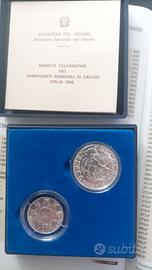 Cedo da collezione privata dittico di monete in argento 835% del 1989 dal valore facciale di L.500 e L.200 dei mondiali di calcio ITALIA 90 (Repubblica Italiana) con conservazione come da foto in cofanetto e certificato originali e mai aperta! ! Vendo per cessata collezione ed avendo anche altre monete sia italiane che estere non esitate a contattarmi anche solo per info!Attendo e valuto proposte!
