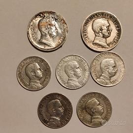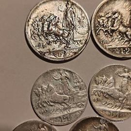 Piccola raccolta di monete in argento di Vittorio Emanuele III 2 lire e 1ira quadriga Da pulire eventualmente Peso 45g Prezzo un po' trattabile