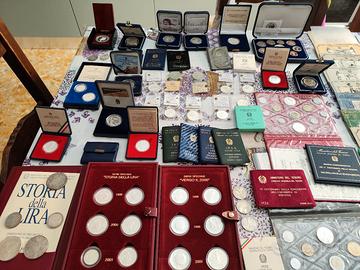 vendo collezione completa divisionali + commemorative argento complete repubblica italiana,+ dollaro americano 1oz ,moneta argento massiccio australiano,+ moneta 20 lire cappellone+ moneta 20 lire littorio,queste due periziate bb+,più alcune monete regno sempre argento,+ 2 monete marchi argento reich mi,più a5 franchi francesi argento e 5 franchi svizzeri argento,più 2 500 lire dante, + 500 lire 1961,al miglior offerente.Evitate offerte ridicole che non vi rispondo neanche