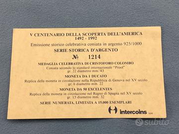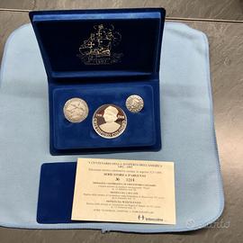 Collezione storica commemorativa del V Centenario della scoperta dell'America ( 1492 - 1992 ), composta da tre preziose monete coniate in argento 925/1000.