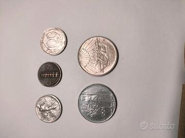 5 monete e due banconote italiane