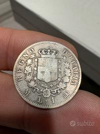 moneta da 1 Lira di Vittorio Emanuele II, il primo Re d'Italia.