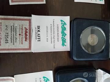 6 monete certificate Bolaffi,prime due foto una lira del 1951,l'altra Vittorio EMANUELE II,le altre 4 foto sono descritte,euro 50 comprese i cofanetti e le certifiche.