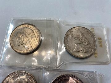 500 Lire d'argento "Dante Alighieri", coniate per celebrare il 700° anniversario della nascita del Sommo Poeta.
