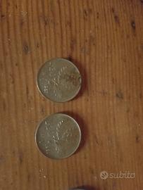 Tre monete da 10 lire spiga argento, una del 1971, una del 1976 , una del 1981, più due monete da 20 lire oro, una del 1971 e una del 1982.