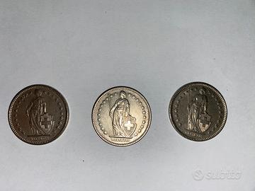 Monete da 2 franchi svizzeri 1968/1969/1970