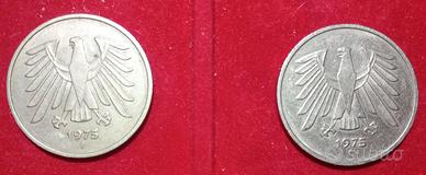 2 monete da 5 marchi della Germania Ovest del 1975