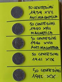 Monete da 50 centesimi dal 1939 al 1942 come da foto