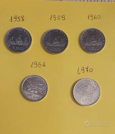 4 monete da 500 lire arg.g.11 cad. 1 moneta da 1000 lire gr.14,6 Anni e monete come da foto. € 150,00