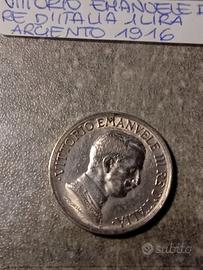 -Vittorio Emanuele III 1 Lira argento 1916 €80