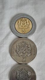 Lotto di tre monete del Marocco. Da 1 dirham. 2 dirham e 5 dirham. In ottimo stato di conservazione.