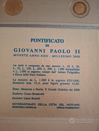 Monete del Vaticano, anno santo del 2000 con moneta da 1000 lire in argento vendo