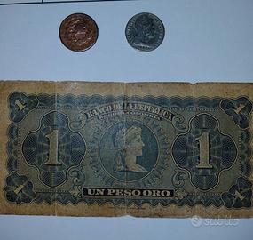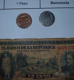 Lotto composto da monete e una banconota colombiana.