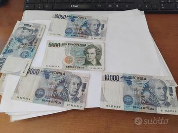 Vendo lotto monete e banconote 500 lire argrnto e dollari