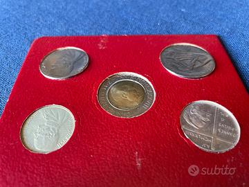 Piccola collezione di monete e francobolli vaticani. Le monete sono da lire 10,20, 50, 100, 500 del pontificato di Giovanni Paolo II piu sei francobolli dedicati al tema della natività. Conservati con cura.