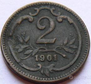 AUSTRIA: Riforma monetaria - 2 HELLER 1897 (KM 2801) spl/fdc qfdc 7 euro - RARA 12157000 pz. coniati - 2 HELLER 1901 (KM 2801) qspl 40 euro - 2 HELLER 1911 (KM 2801) qspl/spl 3 euro - 2 HELLER 1914 (KM 2801) qfdc 7 euro - 10 HELLER 1894 (KM 2802) bb/spl 2,5 euro - 10 HELLER 1895 (KM 2802) bb/spl spl 2,5 euro - NON COMUNE 7592000 pz. coniati - 20 HELLER 1909 (KM 2803) qspl 15 euro - RARO IN QUESTA CONSERVAZIONE - 20 HELLER 1916 (KM 2826) qfdc 10 euro - RARISSIMA 235000 pz. coniati - ARGENTO (5 gr. 83,5%) CORONA 1892 (KM 2804) bb+ 400 euro - MOLTO RARA 2142000 pz. coniati - ARGENTO (5 gr. 83,5%) CORONA 1897 (KM 2804) bb+ bb/spl 80 euro Sessantesimo anniversario del regno - NON COMUNE IN QUESTA CONSERVAZIONE - ARGENTO (5 gr. 83,5%) CORONA 1908 (KM 2808) QFDC 20 euro (dritto un colpetto e segnetti da contatto nel campo - bellissimo argento lucente) - ARGENTO (10 gr. 83,5%) 2 CORONA 1912 (KM 2821) spl spl/fdc 30 euro Accetto anche scambi con monete italiane di qualsiasi epoca. Invio foto della singola moneta.