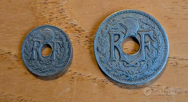 Monete francesi bucate C. 5 del 1921 C. 25 del 1919
