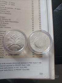 Cedo da collezione privata dittico di monete in argento 835% dal valore facciale di L.2.000 (anno 2000 prima serie Repubblica Italiana) con conservazione come da foto in blister originale mai aperte! ! Vendo per cessata collezione ed avendo anche altre monete sia italiane che estere non esitate a contattarmi anche solo per info!Attendo e valuto proposte!