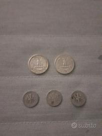 numero 5 monete in argento di cui 3 monete da 10 centesimi di dollaro statunitensi, moneta nota come "dime". numero 2 monete in argento Washington quartiere da 25 cent rispettivamente del 1964 e del 1963, del peso complessivo di 12 gr. per tutti e due.