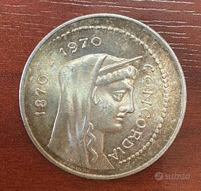1 Fronte-Retro ) moneta commemorativa italiana da 1000 lire coniata nel 1970, argento 835%, circa 11g, diametro 29mm, moneta ufficiale da collezione. (25 euro)