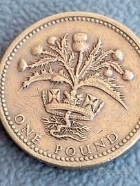 Una sterlina del 1984, rara, con i simboli floreali della monarchia.