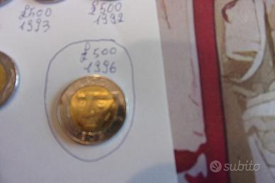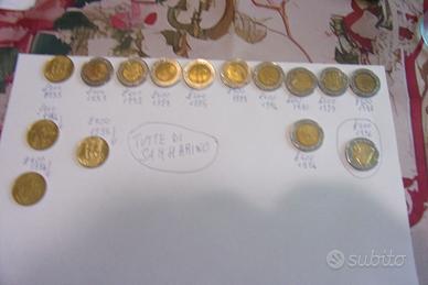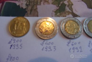 Monete lire 500 San Marino varie annate : 85, 89 , 90, 92, 93, 94, 96, lire 200 del 94, 95 . Prezzo Euro 30 l'una. Tel. 3463838559