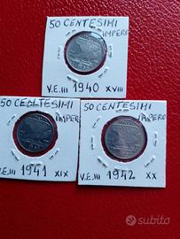 5 monete da 50 centesimi lire italiane Impero Vittorio Emanuele lll