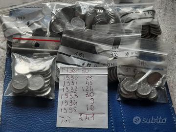 241 pezzi lire 50 mignon dal 1990 al 1995.