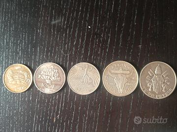 vendo quattro monete più una medaglia in argento. come da foto. potete contattarmi per qualsiasi info. cordiali saluti.