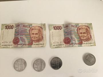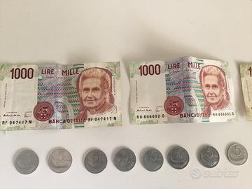 Vendo Lotto da collezione MONETE/NUMISMATICA ~ VECCHIE LIRE ITALIANE composto da 33 pezzi. In dettaglio: 3 banconote 1.000 Lire MARIA MONTESSORI (1996, 2° lettera "F"): 6 euro l'una. 1 banconota 1.000 Lire MARIA MONTESSORI (1998, 2° lettera "H"): 3 euro. 1 banconota 1.000 Lire MARIA MONTESSORI (1998, 2° lettera "G"): 2 euro. 3 monete 5 Lire DELFINO (1954): 10 euro l'una. 2 monete 5 Lire DELFINO (1955): 8 euro l'una. 1 moneta 5 Lire DELFINO (1969): 2 euro. 1 moneta 5 Lire DELFINO (1986): 2 euro. 1 moneta 5 Lire DELFINO (1988): 2 euro. 1 moneta 10 Lire SPIGA (1951): 7 euro. 1 moneta 20 Lire SPIGA (1970): 2 euro. 1 moneta 100 Lire MINERVA (1956): 50 euro. 1 moneta 100 Lire MINERVA (1965): 10 euro. 1 moneta 100 Lire MINERVA (1977): 2 euro. 1 moneta 100 Lire MARCONI (1974): 1 euro. 1 moneta 200 Lire CENTENARIO GUARDIA DI FINANZA (1996): 2 euro. 1 moneta 500 Lire IFAD (1998): 1 euro. 1 moneta 1000 Lire ITALIA TURRITA 1° TIPO SBAGLIATA: 5 euro. 1 moneta 10 centesimi APE (1924): 10 euro. 1 moneta 50 centesimi VITTORIO EMANUELE III - IMPERO (1941 XIX): 5 euro. 4 monete 100 Lire ITALIA TURRITA 2° TIPO (1993): 1 euro l'una. 1 moneta 100 Lire ITALIA TURRITA 2° TIPO (1994): 1 euro. 1 banconota 1.000 Lire MARCO POLO (1982): 5 euro. 1 banconota 50 Lire ELMATA (1951): 25 euro. 1 banconota 10 Lire LUOGOTENENZA TESTA DI GIOVE 1° Serie (1944): 25 euro. 1 banconota 1.000 Lire GIUSEPPE VERDI 1° Tipo (1964): 90 euro.