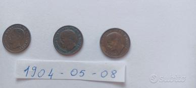 3 monete in rame da 1 Centesimo del 1904/1905/1908 di Vittorio Emanuele 3°