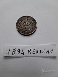 2 monete da 20 Centesimi del 1894 Berlino di Umberto 1° condizioni come da foto