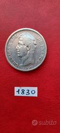 Francia Rara Moneta d'argento da 5 franchi " Carlo X " del 1830 K diametro mm.37 peso g.25 condizioni SPL come da foto