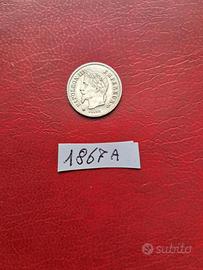 Francia Rara moneta d'argento da 20 centesimi " Napoleone 3° " del 1867 a condizioni QFDC come da foto