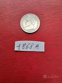 Francia Rara moneta d'argento da 20 centesimi " Napoleone 3° " del 1868 a condizioni QFDC come da foto