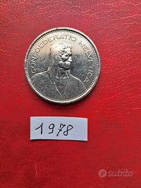 Svizzera 2 monete da 5 franchi del 1968 SPL + 1978 BB