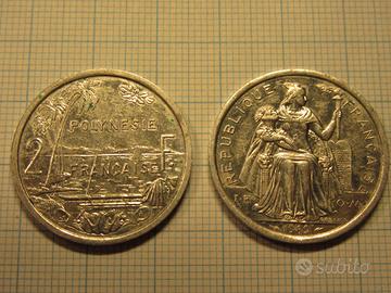 Vendo coppia di monete da 2 franchi della POLINESIA FRANCESE, anni 1988 e 1989. Materiale: alluminio. Diametro 27 mm. Prezzo per la coppia 10€. Spedisco a 1/2 TuttoSubito