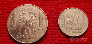 vendo 6 monete del regno d'italia : 1914 centesimo 1927 lire 5 argento 1929 lire 5 argento 1941 lire 2 1939 lek 2 e lek 0,20 Albania