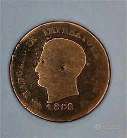 Bella moneta storica del Regno d'italia, datato 1808 e corrispodente al periodo napoleonico Napoleone imperatore e re. Molto vissuta e consumata.