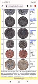 le monete raffigurano i personaggi 1) Tolomeo II filadelfo 2) Tolomeo V Iside e L'Aquila tolemaica 3) Adriano 4) il quadrigato Giano 5) Vespasiano e la dea Roma 6) Fausto Cornelio 6) Carlo V Asburgo 7) moneta degli sforza 8) One cent e baiocco come da pubblicità del tempo allegata