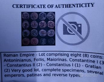 Lotto di 8 monete Romane. Specifiche come da immagini,certificazione di acquisto.Accetto proposte di acquisto.