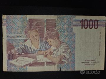 Vendo banconota originale da 1000 Lire “M. Montessori” della Banca d’Italia, in buone condizioni generali per l’età. Serie: RE957373E La banconota presenta normali segni di circolazione: pieghe visibili leggera usura ai bordi colori ancora ben leggibili nessun taglio o scritta È un pezzo storico degli anni ’90 molto ricercato da chi colleziona la cartamoneta italiana. Perfetta per: • collezionisti • appassionati di numismatica • idea regalo vintage Banconota autentica al 100%. Spedizione disponibile (posta o corriere) oppure consegna a mano nella mia zona.
