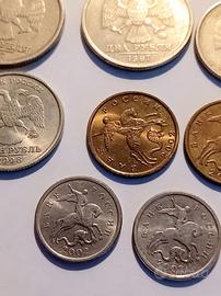Dieci monete russe varie date, dal 1997 al 2002