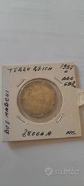 1939 – 2 Marchi argento Paul von Hindenburg Zecca D 1937 – 2 Marchi argento Paul von Hindenburg Zecca F
