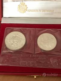 Vendo due monete d'argento fior di conio San Marino mondo animale in pericolo, con certificato di garanzia. In particolare:
