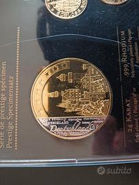 cedo set Prestige monete euro Germania, Castello di Neuschwanstein, placcate in oro 24 K e rodio 999pl. Tiratura solo 2000pz. Bellissime, € 25
