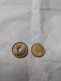 Due monete spagnole da 25 pesetas e 5 pesetas