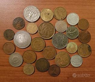 vendo in blocco tutte le vecchie monete in fotografia di diverse nazionalità europee e internazionali