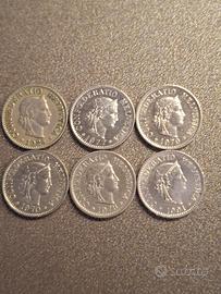 11 monete svizzere da centesimi. 10 centesimi Anni 1924-1970-1977-1978-1979-1991 5 centesimi Anni 1955- 1958-1959-1988-1992